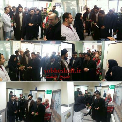 به گزارش روابط عمومی شبکه بهداشت ودرمان شهرستان شفت؛مهندس محسنی فرماندار و امام جمعه محترم به همراه سایر مسئولین شهرستان در روز جمعه 15 بهمن 95 ضمن عرض تبریک ولادت با سعادت حضرت زینب (س) و روز پرستار از پرستاران بیمارستان امام رضا(ع) تجلیل نمودند